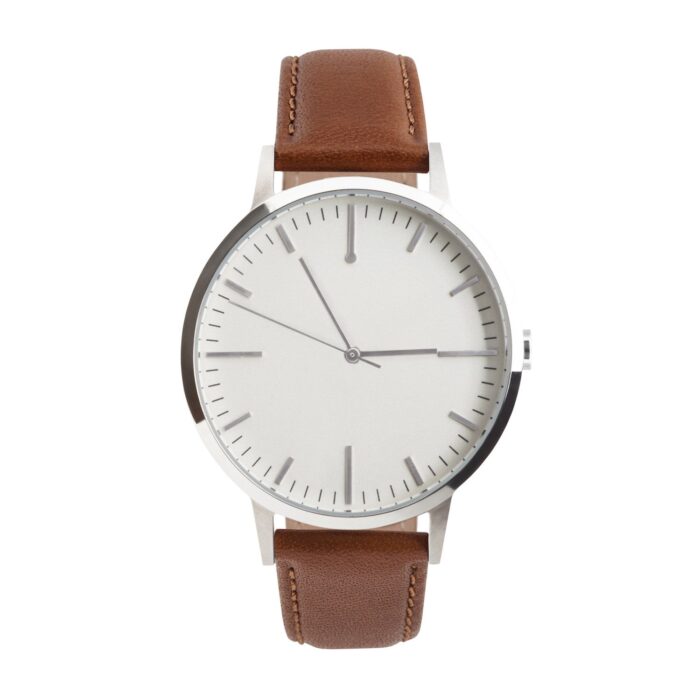 As seen in RIDDLE MAGAZINE, the limited edition 40mm silver and tan men’s watch (or women that prefer a larger watch dial) combines the classic detailing of vintage watches with a modern minimalist finish.